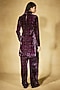Featuring a deep plum tunic in velvet base with monogram pattern. It is paired with wide-leg pants. Accentuate it with diamond stud earrings, stilettos and an embellished clutch for evening soirees, cocktail parties or standout celebrations.