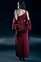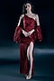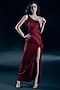 Featuring a flame red one-shoulder gown in liquid satin base with a thigh-high slit. It is paired with detachable cape sleeves. Accentuate it with statement crystal earrings and sleek heels, perfect for cocktail soirees or glamorous evening events.