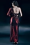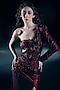 Featuring a flame red gown saree in stretch shimmer lycra base. It is paired with a bralette having an asymmetrical neckline and embroidery. Accentuate it with statement crystal earrings and sleek heels, perfect for cocktail soirees or glamorous evening events.