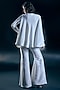 Featuring an ivory Cape in glass satin and lycra base with a deep neckline and embellishments. It is paired with bell-bottom pants and a top. Accentuate it with statement earrings and embellished juttis for a stylish ensemble, ideal for festive gatherings, family functions or wedding celebrations.