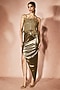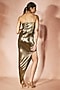 Featuring a metallic gold asymmetric corset dress in foil base. Accentuate it with statement earrings and stilettos for evening wear or cocktail parties.