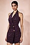 Featuring a purple halter-neck dress in crepe base with sculpted detail and monogram print. Accentuate it with diamond stud earrings, stilettos and an embellished clutch for evening soirees, cocktail parties or standout celebrations.