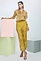 Featuring a savannah yellow shirt in chantilly lace base with embroidery. It is paired with embroidered pants and a slip. Accentuate with statement earrings and heels for festive occasions.