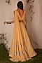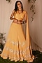 Featuring a yellow lehenga in georgette and organza base with geometric print, sequins, and hand embroidery. It is paired with a matching corded blouse with an attached dupatta.