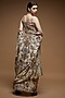 Featuring a beige cape in bemberg crepe base with digital print and swarovski embroidery. It is paired with a blouse and a printed draped skirt. Accentuate with statement jewellery and heels for festive occasions.