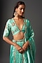 Featuring a blue lehenga in crushed silk base with embroidery. It is paired with a blouse having zardosi, tikki and pearl embroidery, including an embroidered dupatta. Accentuate it with statement earrings and heels for sangeet ceremonies.