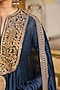 Featuring a blue kalidar kurta in silk chanderi base with zardosi and tikki embroidery. It is paired with straight pants, an embroidered dupatta and an inner. Style with polki jewellery, soft curls and heels for festive occasions, weddings or sangeet ceremonies.