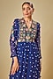 Featuring a blue frock-style kurta in silk base with tie-up sleeves, floral applique motifs, floral and resham embroidery. It is paired with narrow-fit pants. Accentuate it with statement jewellery and heels for festive occasions or sangeet ceremony.