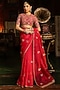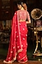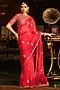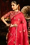 Featuring a dark pink saree in organza and chiniya silk base with zardosi and pitta embroidery. It is paired with an embroidered blouse. Style with polki jewellery, soft curls and heels for festive occasions, weddings or sangeet ceremonies.