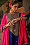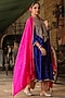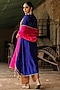 Niti Bothra features a mesmerizing Electric Blue Kurta Set that captivates with its elegance. The eye-catching kurta is crafted in pure banarasi spun silk with tikki, dori, zari and resham embroidery. It is paired with orange silk chanderi embroidered salwar pants. Accessorize the designer kurta set with statement jewellery and heels for a festive or wedding ceremony, showcasing style and sophistication.