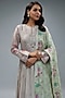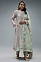 Featuring a green kalidar kurta in chanderi silk base with print and embroidery. It is paired with salwar pants and a dupatta. Accentuate with statement earrings and heels for a festive occasion or pooja ceremony.