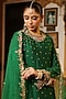 Featuring a green kurta in chiniya silk base with zardosi, boota and applique embroidery. It is paired with salwar pants and a heavy embroidered dupatta. Accentuate it with statement earrings and heels for a festive occasion, sangeet or wedding ceremony.