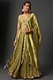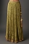 Featuring a green lehenga in crushed silk base with embroidery. It is paired with a blouse having zardosi, tikki and pearl embroidery, including an embroidered dupatta. Accentuate it with statement earrings and heels for mehendi ceremonies.