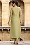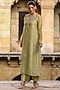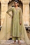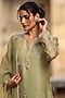 Featuring a green kurta in organza and silk tencel base with zardosi, pearls, tikki and resham embroidery. It is paired with straight pants, an inner and an embroidered dupatta. Style it with kundan polki earrings and block heels for mehendi functions or festive gatherings.