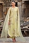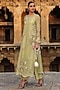 Featuring a green kurta in organza and silk tencel base with zardosi, pearls and resham embroidery. It is paired with straight pants, an inner and an embroidered dupatta. Style it with kundan polki earrings and block heels for mehendi functions or festive gatherings.