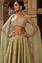Featuring a green lehenga in organza base with zardosi, resham and tikki embroidery, including an attached cancan. It is paired with an embroidered blouse and an embroidered dupatta. Accentuate the designer lehenga with swarovski or zircon jewellery, embellished heels and a potli bag for a bridal look, Perfect wear for your wedding, mehendi or engagement ceremony.