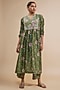 Green Silk Chanderi Beads Embroidered & Floral Printed Kurta Set