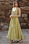 Featuring a green anarkali in silk modal base with zardosi, tikki and resham embroidery. It is paired with churidar and a koti. Style it with kundan jewellery, soft curls and embellished heels for weddings, sangeet nights or festive celebrations.