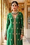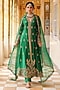 Featuring a green kalidar anarkali in silk tencel base with embroidery. It is paired with straight pants and an embroidered dupatta. Style with polki jewellery, soft curls and heels for festive occasions, weddings or sangeet ceremonies.