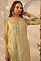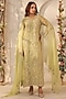 Featuring a green kurta in organza and silk tencel base with applique, resham and pearl embroidery, including pearl hangings. It is paired with straight pants, an inner and a dupatta having lace detailing. Accentuate it with pearl drop earrings and embellished juttis for a stylish ensemble, ideal for festive gatherings, mehendi functions or traditional celebrations.