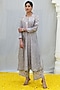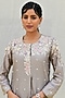 Featuring a grey kurta in banarasi silk base with applique floral, lace, sequins, pearls and resham embroidery. It is paired with matching embroidered palazzo pants.
