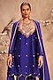 Niti Bothra presents an indigo kurta in chiniya silk base with tikki, mirror and zardosi embroidery. It is paired with sharara pants and an embroidered dupatta. Accentuate it with statement earrings and heels for festive occasions.