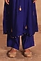 Niti Bothra presents an indigo kurta in chiniya silk base with sequins, mirror, applique motifs and zardosi embroidery. It is paired with palazzo pants. Accentuate it with statement earrings and heels for festive occasions.