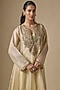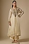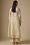 Featuring an ivory long pheran kurta in organza base with zardosi, tikki, and resham embroidery. It is paired with straight pants and an inner. Style the kurta set with kundan polki dangler earrings, choker necklace, and wedges or juttis for festive or wedding ceremonies.