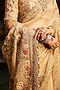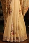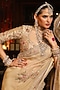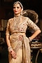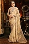 Featuring an ivory saree in organza and chiniya silk base with zardosi, aari, dori and tikki embroidery. It is paired with an embroidered blouse. Style with polki jewellery, soft curls and heels for weddings or sangeet ceremonies.