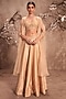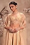 Niti Bothra presents an ivory cape in raw silk and organza base with mirror, zardosi and tikki embroidery. It is paired with a bustier and a lehenga. Accentuate with statement jewellery and heels for a sangeet, wedding or engagement ceremony.