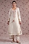 Featuring an ivory kurta in silk chanderi base with print, beads and thread embroidery. It is paired with printed pants. Accentuate it with dangler earrings and heels for a festive occasion or pooja ceremony.