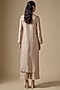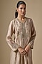 Featuring an ivory frock-style kurta in silk tencel base with zardosi embroidery and print. It is paired with straight printed pants. Style the kurta set with kundan polki dangler earrings and wedges or juttis for festive or wedding ceremonies.