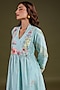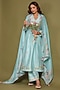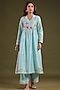 Featuring a light blue kurta in silk chanderi base with print, beads and thread embroidery. It is paired with printed straight pants. Accentuate it with dangler earrings and heels for a festive occasion or pooja ceremony.