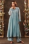 Featuring a light blue kurta in silk chanderi and silk tencel base with a collared neckline, pintuck and lace detailing. It is paired with straight pants and an inner. Accentuate it with pearl drop earrings and embellished juttis for a stylish ensemble, ideal for festive gatherings, family functions or traditional celebrations.