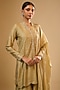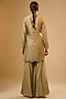 Featuring a light green kurta in chiniya silk base with gota, mirror, zardosi and tikki embroidery. It is paired with sharara pants having zari lace panels and an embroidered dupatta. Accentuate it with delicate jhumkas and heels. Perfect for festive gatherings, family functions and traditional daytime events.