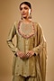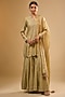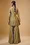 Niti Bothra presents a light green kurta in chiniya silk base with tikki, mirror and zardosi embroidery. It is paired with embroidered sharara pants and an embroidered dupatta. Accentuate it with statement earrings and heels for festive occasions.