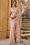 Featuring a light pink saree in silk modal base with aari, dori and pearls embroidery. It is paired with an embroidered blouse having pearl hangings. Accentuate the designer saree with swarovski or zircon jewellery, soft curls and embellished heels for a bridal look, Perfect wear for your wedding or engagement ceremony.