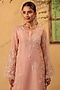 Featuring a light pink kurta in organza and silk tencel base with applique, resham and pearl embroidery, including pearl hangings. It is paired with straight pants, an inner and a dupatta having lace detailing. Accentuate it with pearl drop earrings and embellished juttis for a stylish ensemble, ideal for festive gatherings, family functions or traditional celebrations.