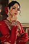 Niti Bothra features a mesmerizing Maroon Angrakha Set that captivates with its elegance. The eye-catching angrakha is crafted in silk chanderi with churidar sleeves, gota patti, patra tikki, kasab and resham embroidery. It is paired with cotton palazzo pants and a silk chanderi embroidered dupatta having latkans. Accessorize the designer angrakha set with statement jewellery and heels for a festive or sangeet ceremony, showcasing style and sophistication.