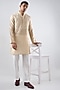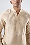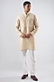 Featuring a beige kurta in silk tencel base with applique, tikki and resham embroidery. It is paired with straight pants. Style it with a pair of mojaris for a festive occasion, cultural event, wedding or engagement ceremony.