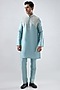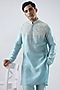 Featuring a blue kurta in silk tencel base with tikki and resham embroidery. It is paired with straight pants. Style it with a pair of mojaris for a festive occasion, cultural event, wedding or engagement ceremony.