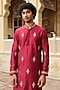 Featuring a maroon kurta in silk tencel base with tikki and zari embroidery. It is paired with narrow pants. Style it with a pair of kolhapuris and a stole for festive occasions, weddings or sangeet ceremony.
