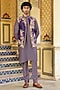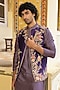Featuring a purple bundi jacket in silk tencel base with applique and zardosi embroidery. It is paired with a printed kurta and narrow pants. Style it with a pair of kolhapuris and a bracelet for weddings or sangeet ceremony.