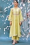 Featuring a mint green scalloped kurta in chanderi silk base with multi-coloured french knots and floral embroidery. It is paired with matching embroidered palazzo pants.