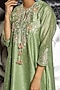 Featuring a mint green kurta in silk chanderi base with applique and pearls embroidery. It is paired with matching palazzo pants having organza layers.