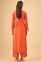 Featuring an orange kurta in silk base with resham threadwork, marodi and zardosi jaal embroidery. It is paired with palazzo pants. Accentuate with statement earrings and heels for a festive occasion or pooja ceremony.