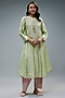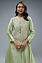 Featuring a pastel green kurta in silk base with zari, dori and tikki embroidery. It is paired with pastel pink pants. Accentuate with statement earrings and heels for a festive occasion or pooja ceremony.