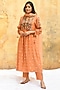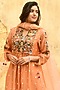 Featuring a peach frock kurta in pure handwoven banarasi silk and bemberg base with floral applique motifs, resham and 3D rosettes organza, including handcrafted tassels. It is paired with matching narrow fitted pants.
