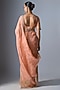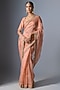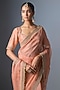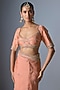 Featuring a peach saree in organza and chiniya silk base with thread, zardosi, aari dori and tikki embroidery. It is paired with a blouse having bottis spread all over. Accentuate it with dangler earrings and heels for a festive occasion, cultural event, wedding or engagement ceremony.