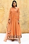 Peach Pure Handwoven Banarasi Silk & Bemberg Embroidered Anarkali Set
